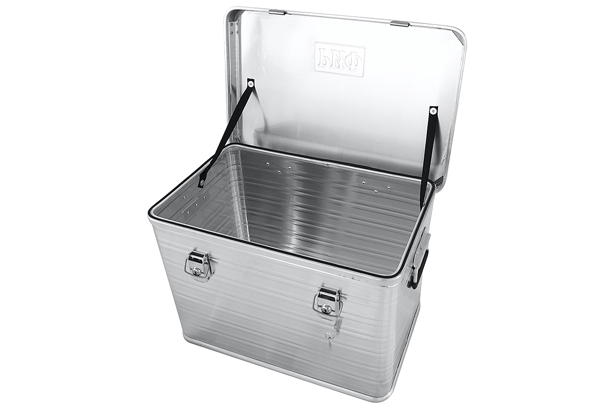 Прочность ящика обеспечивается за счёт двух мощных ребер жёсткости расположенных по периметру ящика в верхней и нижней части и штампованных ребер боковых стенок. Крышка фиксируется к ящику на крупных усиленных стальных петлях, а её открытие ограничивается капроновыми ремнями. Два замка с защелками обеспечивают надёжное закрытие и достаточную плотность прилегания крышки к уплотнительной резинке, обеспечивающей надёжную пылевлагозащиту. Замки оснащены личинками под ключ и отверстиями для опломбировки. Верхняя крышка ящика оснащена литыми уголками с упорами для усиления прочности в целом, а также для надёжной фиксации ящиков друг на друге при вертикальном штабелировании. Прочные и удобные ручки рассчитаны на перенос значительного веса.
