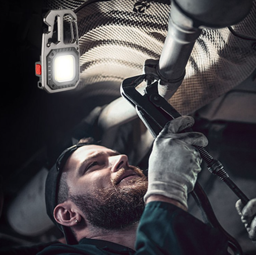 Семь режимов освещения, маленький мультитул с отвертками, карабин, открывашка, шило-бита - на все случаи жизни.